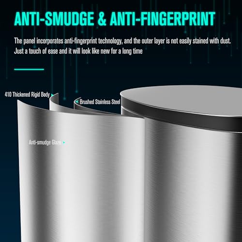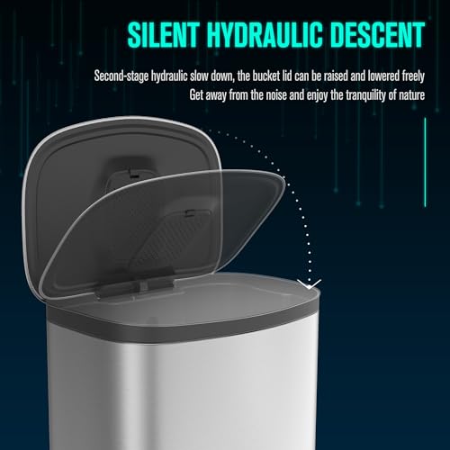 Durable and Easy to Maintain: Our trash can features a smudge-resistant, durable stainless steel exterior, ensuring it stays looking pristine for longer. The aufwendig-duty plastic interior bucket is easily removable for hassle-free waste disposal, while the stay-open lid lock facilitates effortless bag changes and cleaning.