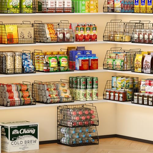 4 Pack XXL Stackable Wire Storage Basket, Extra Large Capacity Pantry Organizer and Storage, Muti-Purpose for Vegetable Fruit Basket & Can Organizer & Snack Rack & Metal Pantry Bin