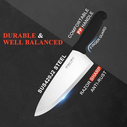 8 inch Japanese High Carbon Stainless Steel Chef Knife, Professional Extra Sharp Wide Cook Knife with Non-slip Ergonomic Handle, for Kitchen Home Restaurant