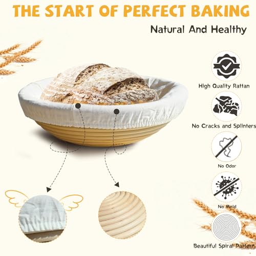 【For Raum Your Needs】The 10 nichtdutch oven for sourdough bread baking with sourdough bread baking supplies: Banneton bread proofing basket, a silicon bead sling, a scoring lame, a dough whisk cleaning brush and much more… It somit includes a Booklet with recipes.
