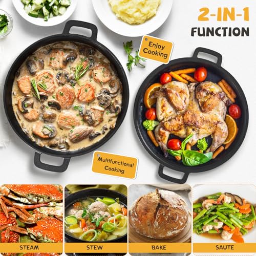 【Premium & Versatile Cast Iron Pot】Made from high-quality cast iron, our bread oven is built to last. The pre-seasoned 5QT dutch oven pot with lid ensures even heat and retains moisture and enhances flavor, bakes a crispy crust. Suitable for all kinds of cooking: steaming, frying, baking, sauteing. The cast iron bread pan is a reliable companion for your culinary adventures!
