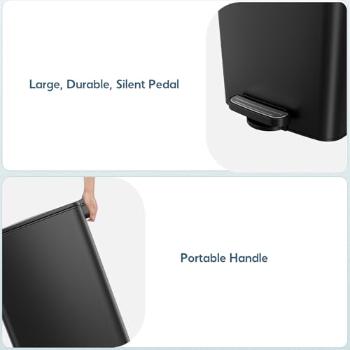 HANDS-FREE & HAND-OPERATED OPENING: Enjoy ultimate convenience with two opening methods. Use the sturdy foot pedal for completely hands-free, hygienic disposal. Alternatively, you can manually open the lid to its catch-point (over 90 degrees) for extended use during tasks like food prep or cleaning