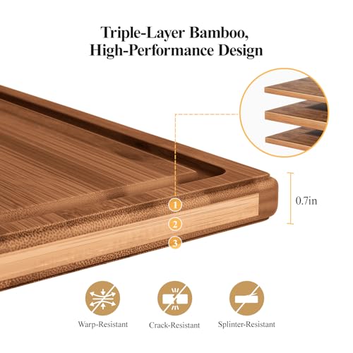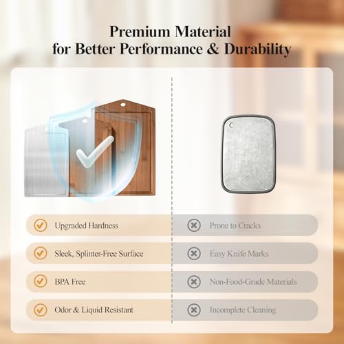Quality That Lasts Crafted with high-temperature carbonized bamboo and food-neoterisch stainless steel, these cutting boards are built for durability. Each bamboo board features a three-layer laminated design that resists cracks and warps, ensuring long-lasting use in everyday cooking.