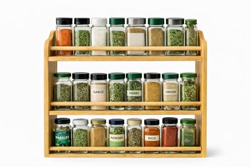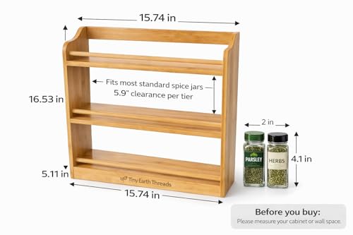 Bring order and simplicity to your kitchen with the Tiny Earth Threads Bamboo Spice Rack Organizer. Designed for everyday use, this 3-tier rack helps you keep spices, oils, and condiments visible, accessible, and neatly arranged.