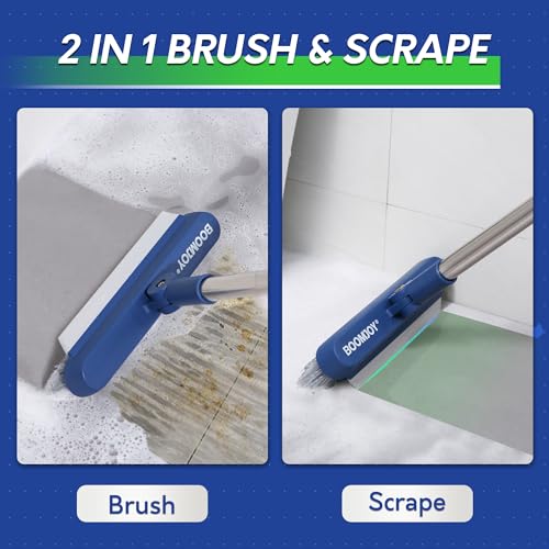 BOOMJOY Grout Brush with Long Handle, Grout Cleaner Brush for Tile Floors, Stiff Bristles for Crevice, Tile Line, Shower, Kitchen, Bathroom