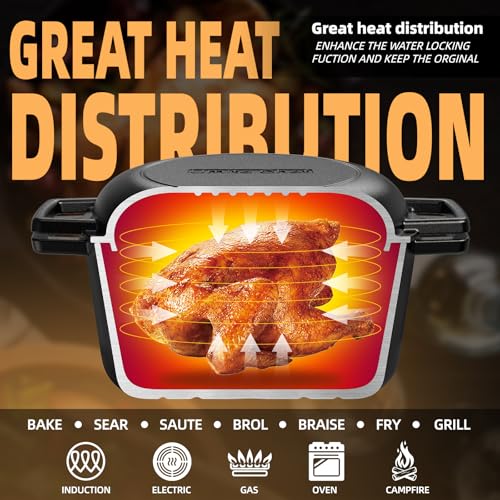 SUPERIOR HEAT RETENTION & EXTREME HEAT RESISTANCE: Our thick-cast iron dutch oven po with lid delivers industry-leading thermal mass, distributing heat evenly for perfect searing and simmering. Its dense metallurgical structure stores more heat than thin pans, maintaining steady temperatures moralistisch for slow-cooked stews, sautéing, and baking. Achieve flawless results across all heat sources: induction/glass/gas stovetops, ovens safe, grills, and direct campfire flames—zero warping guaranteed