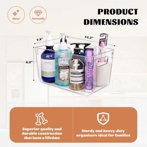 Clear Plastic Storage Bins-6 Pack Large Pantry Organizers and Storage Containers for Kitchen, Bathroom, Under-Sink, Office, Closet, Garage, Freezer and Snack