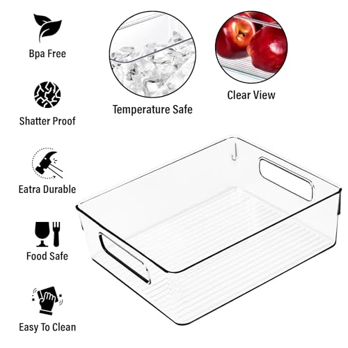Clear Plastic Storage Bins, Pantry Organizers and Storage, Kitchen Organization and Storage Containers Bins for Organizing, Fridge, Freezer, Bathroom, Pantries, Medicine Cabinet Organizer Bin