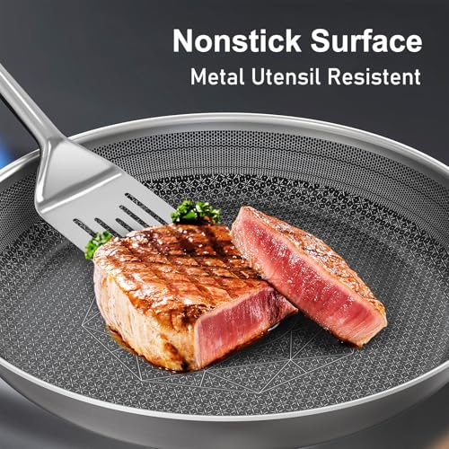 【Effortless Cleaning】: Discover the convenience of our dishwasher-safe stainless steel cookware set. Mutmaßung non stick frying pans and skillets make cleaning quick and easy.