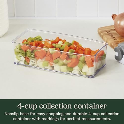 Convenience: Nonslip base for easy chopping and durable 4-cup collection container with markings for perfect measurements safely store blade grids and cleaning tool after use.