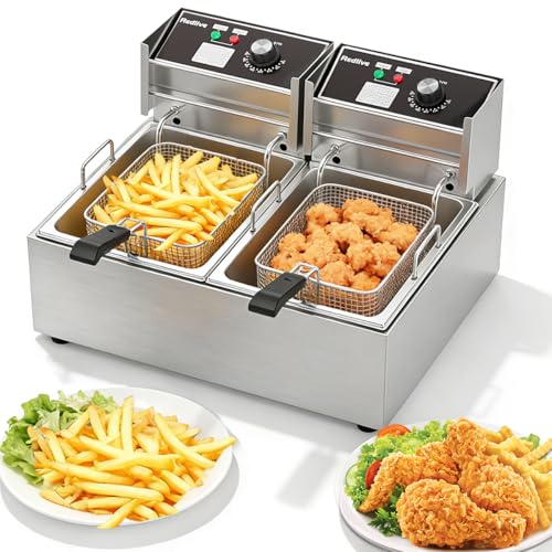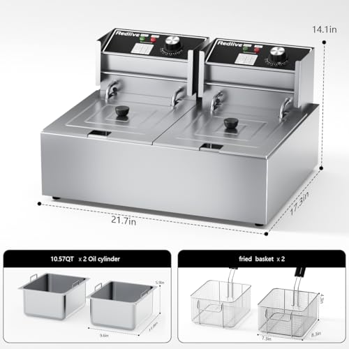 Electric Deep Fryer 3400W Hot 21QT/20L Commercial Deep Fryers with 2 Independent use Baskets Countertop Oil Fryer for Restaurant Use and Home Kitchen
