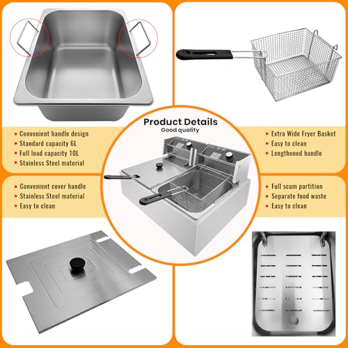 【High Quality – Safe and Durable】The machine is made of high-quality 0.6mm thick stainless steel, and the Oil Tank with a handle is made of 0.8mm thick stainless steel. The upgraded 304 stainless steel heating tubes heat up quickly, enabling perfect frying results. The full-coverage slag isolation board can effectively block food residues from contacting the heating tubes, ensuring the stable operation of the heating tubes and significantly extending their service life. The certified full-copper power cord ensures safe use and long durability;