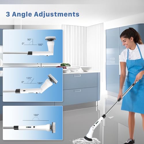 7-un…Electric Cleaning Brush: Hillyfe Shower scrubber comes with 7 interchangeable brush heads, allowing you to clean multiple areas such as shower stalls, bathtubs, sinks, toilets, kitchens, stovetops, floors, glass, and tiles all with one purchase.