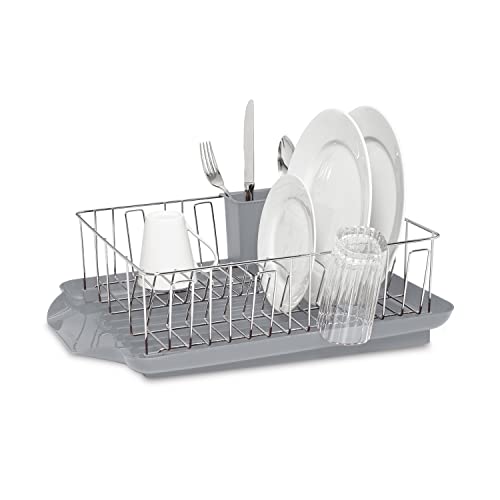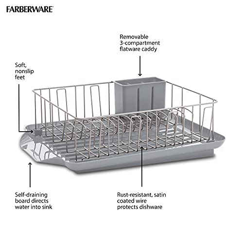 Farberware 3-Piece Large Capacity Dish Drying Rack Set with Drainboard and Utensil Holder, Rust-Resistant Kitchen Counter Dish Drainer