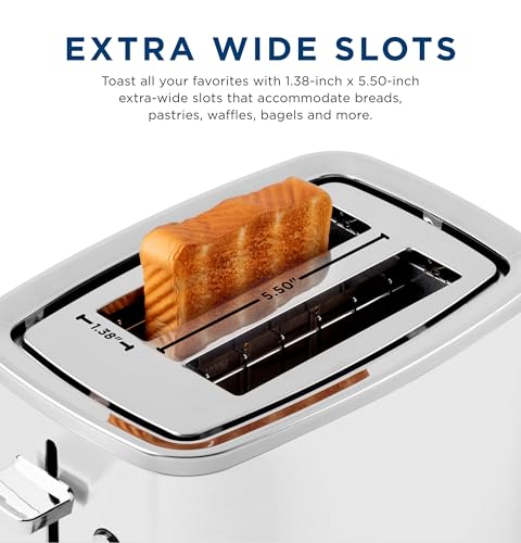 EXTRA WIDE TOASTER SLOTS: Accommodate various types of breads, pastries, waffles and bagels with wide slots that measure 1.38″ x 5.50″