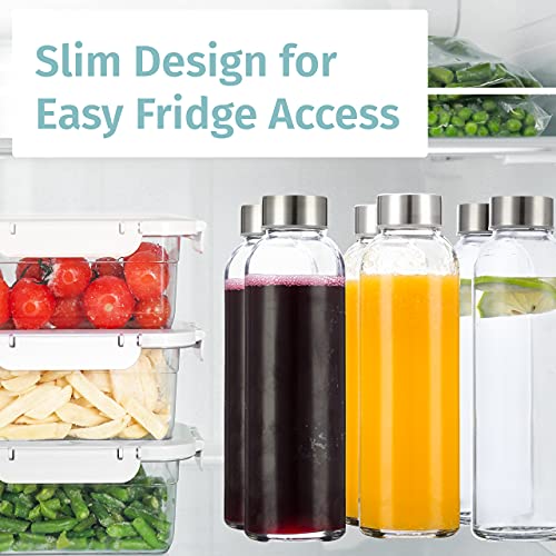 Glass Water Bottles 6 Pack With Sleeves and Stainless Steel Lids – 18oz Size – Leak Proof Caps, Reusable and Perfect For Travel and Storing Beverages Juice, Smoothies, Kombucha, Kefir, Tea