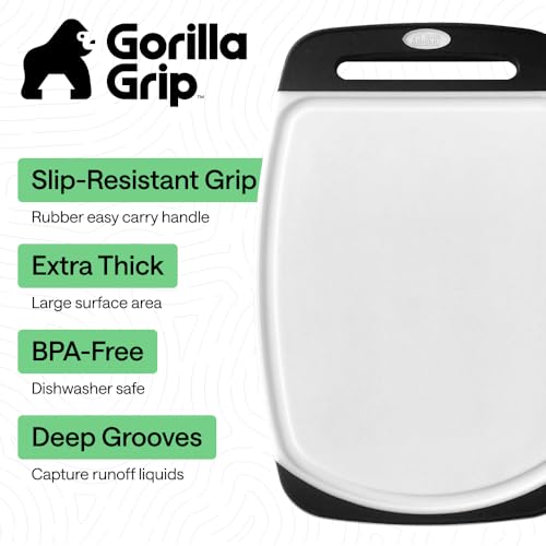 GORILLA GRIP BPA-Free Reversible Kitchen Cutting Board Set of 3, US Designed, Nonporous, Juice Grooves Catch Liquid, Slip Resistant Border, Dishwasher Safe, Durable Large Food Chopping Boards, Black