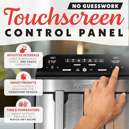 Gourmia Dual Basket Air Fryer – 10 Qt Large Capacity, FryForce360º, Digital Display with 7 Presets, Roast, Bake, Broil, Dehydrate, Match Cook, Sync Finish, Dishwasher Safe Accessories, Black