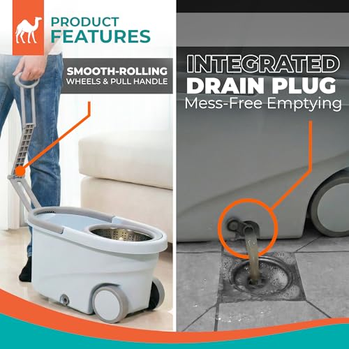 MESS-FREE BUILT-IN DRAIN PLUG: Easily empty dirty water without lifting or spilling, thanks to the built-in drainage plug. Ideal for bathrooms, tile, or deep cleaning, it saves your back and time while keeping your cleaning routine hassle-free