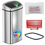 iTouchless 13 Gallon Sensor Trash Can with Odor Filter, 50 Liter Automatic Kitchen Garbage Bin, Fingerprint-Proof Stainless Steel, Smart Hands-Free Motion Lid Pet-Proof Lock, Soft-Close, Matte Silver