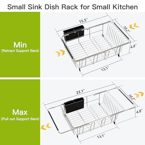 JASIWAY Dish Drying Rack in Sink, Expandable Stainless Steel Dish Drainers for Kitchen Counter, Dish Dryer Rack for Inside Sink, Over The Sink Dish Racks with Utensil Holder, Silver