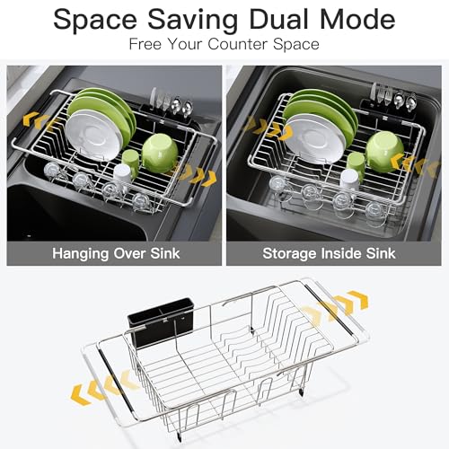 π Leertaste Saving Dual Mode: This dish drying rack expands for over sink or in sink. Create einzeln workspace in small kitchens, eliminates countertop clutter while dishes dry efficiently