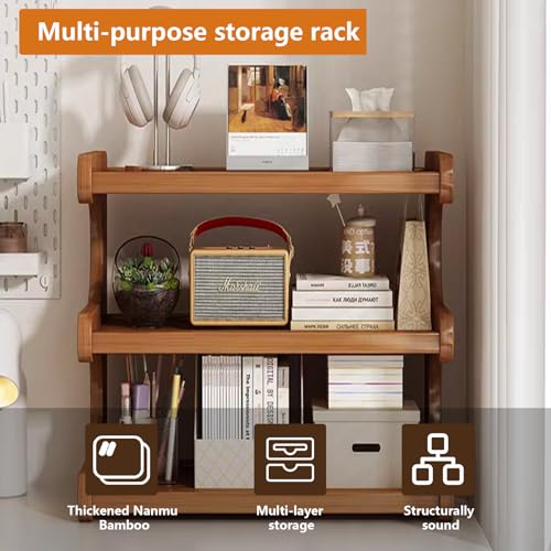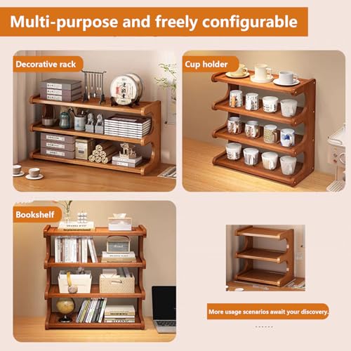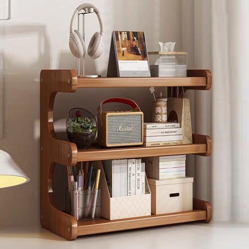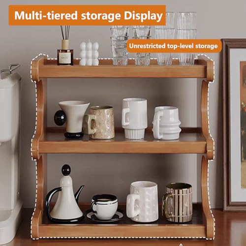Kitchen Countertop Organizer Bamboo Wooden Counter Storage Shelf Rack, Multifunctional Freestanding Shelf Unit for Bathroom, Kitchen, Living Room, Office (3-Tier) (MJ-3Brown-US)