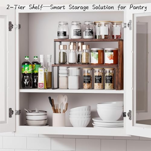 Kitchen Countertop Organizer, Spice Rack Cabinet Organizer Shelf Stackable Counter Corner Shelves Organization and Storage for Pantry, Counter top, Coffee Station Wood Rustic Brown