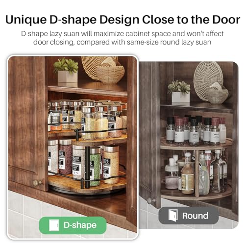 Cool D-Shape Design Save Space: As the character ‘D’ shows, the front side of the D-shape lazy susan fit flush against the door. compared with other round lazy susan, our D-shape spice racks will maximize the storage space for your wall-mounted cabinet, fridge, or pantry.
