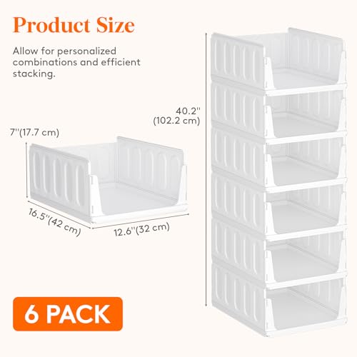 Lifewit Stackable Closet Organizers and Storage Basket for Clothes, Plastic Sweater Storage Bins for Wardrobe, Multifunctional Pants Organizer for RV, Pantry, Bathroom, Kitchen, Dorm, 24L, 6 Pack