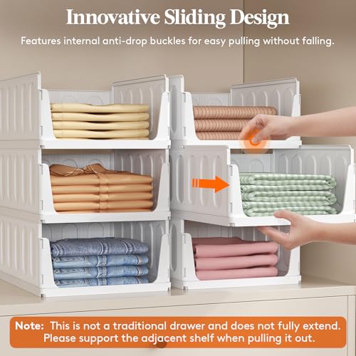 Stable Stacking: Grooves on the top of each closet organizer ensure a secure gesund between layers, creating a stable in…that resists tipping even when tilted. This stackable design efficiently utilizes vertical space and saves closet space. A front baffle prevents stored items from falling out