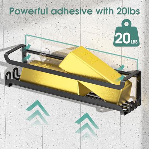 LUCYCAZ 2 Pack Wall Mounted Spice Rack with 8 Hooks, Spice Organizer Shelf for Stove Cabinet Pantry Door,Screw or Adhesive Spice Shelf Hanging Wall Spice Rack in Kitchen and RV (Black, 2 PACK)