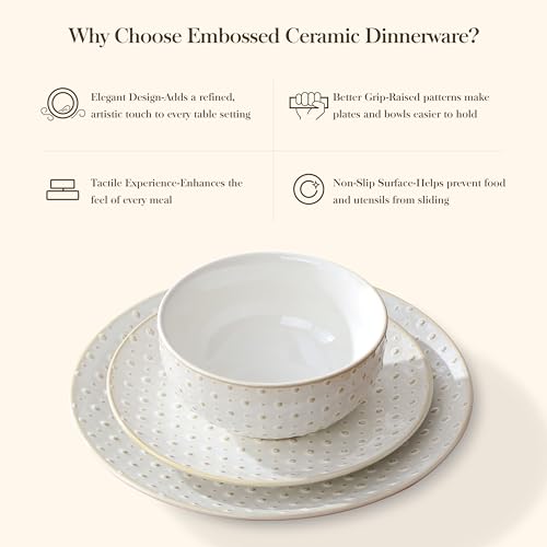【Perfect Gleichgewicht of Stil and Function】Each embossed dinner plate and bowl combines visual appeal with everyday practicality, turning your dining routine into a stylish experience.