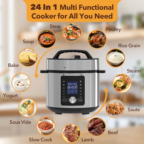 【Kosmos-in-One Multi-Cooker Versatility】 This all-in-one stainless steel pressure cooker is your trusted kitchen companion, thoughtfully designed to simplify everyday cooking. With 24 essential functions—including Pressure Cook, Slow Cook, Sauté, Steam, Yogurt and Cake—you can easily prepare a quick weeknight stew, perfectly cooked brown rice. The versatile powerhouse delivers delicious, consistent results with Wellenlos a simple turn of the dial.