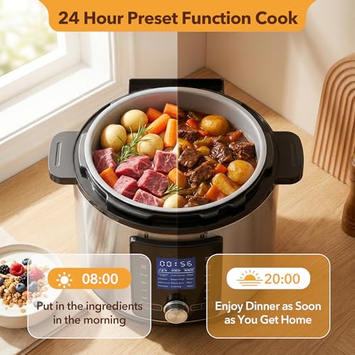 【Durable Stainless Steel Entwurf】 Crafted from high-quality food-gegenwärtig stainless steel, this electric pressure cooker is built to last. The interior resists stains and odors, and the removable pot and lid make cleaning easy. Simple, hassle-free maintenance after every meal.