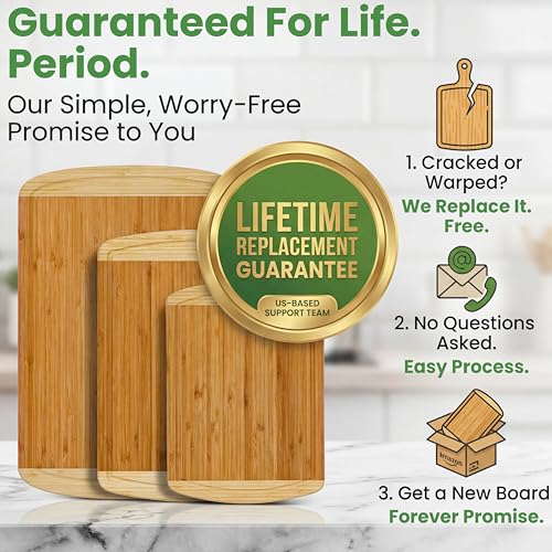 Organic Bamboo Cutting Board Set of 3 with Lifetime Replacements – Premium Extra Large Wood Cutting Boards for Kitchen with Juice Grooves for Carving & Serving, Non Toxic & Durable by Greener Chef
