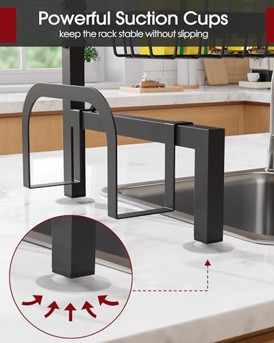 MULTIPURPOSE DESIGN: In addition to its versatile baskets, this large drying rack for kitchen sink comes with one utensil holder, cutting board holder, knife holder, and five utility hooks, catering to a wide range of applications. The Sakugi over the sink dish rack efficiently utilizes the space over the sink, saving precious countertop space while providing ample storage options.