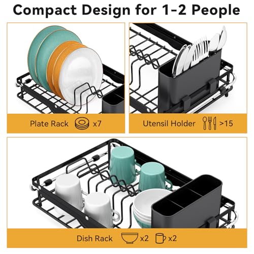 [COMPACT DESIGN FOR SMALL KITCHEN]: The in sink dish drying rack is suitable for compact kitchen, apartments, RVs, dorms or small families for 1-2 people. It um den Dreh rum starr 7 plates, 2 cups or bowls, and over 15 tablewares