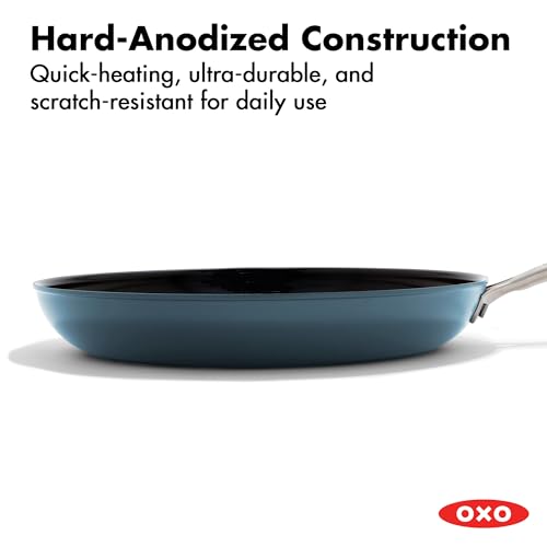 OXO Enhanced 12” Nonstick Frying Pan Skillet, Ceramic PFAS-Free Cookware, Durable Hard Anodized, Scratch Resistant, Stainless Steel Handle, Eggs & Omelets, Dishwasher & Oven Safe, Storm Blue