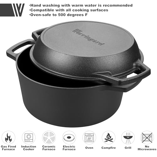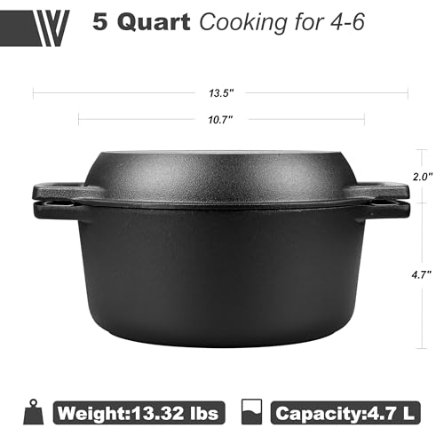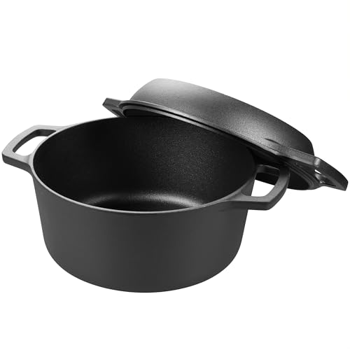 Pre-seasoned Cast Iron Double Dutch Oven Pot with Skillet Lid, Dual-handle, for Bread Baking, Outdoor, Campfire Cooking, include Sourdough Bread Baking Supplies like Banneton Bread Proofing Basket, 5 Quart