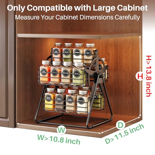 Rotating Spice Rack Organizer for Large Cabinets Kitchen Countertop with Thicken Spice Jars and Labels, Spinning Like Ferris-Wheel, Metal (M)