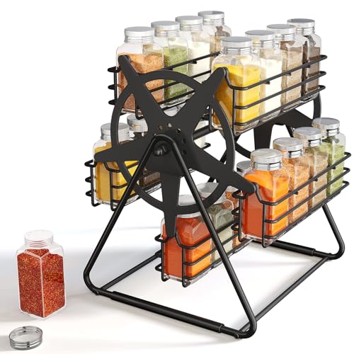 New Design Ferris-Wheel Style for Your Kitchen: The rotating spice rack adds a playful, modern look to countertops, making your kitchen feel cozy and unique.