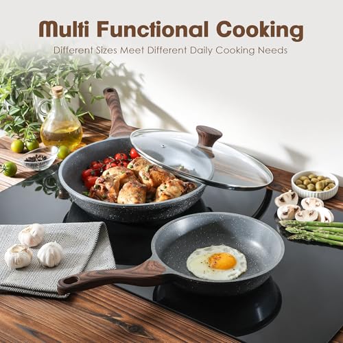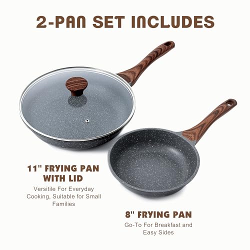 SENSARTE Nonstick Frying Pan Skillets, Swiss Granite Coating Omelette Pans, Healthy Cookware Chef’s Pan, Free of Intentionally Added PFOA (8+11Inch with Lid)