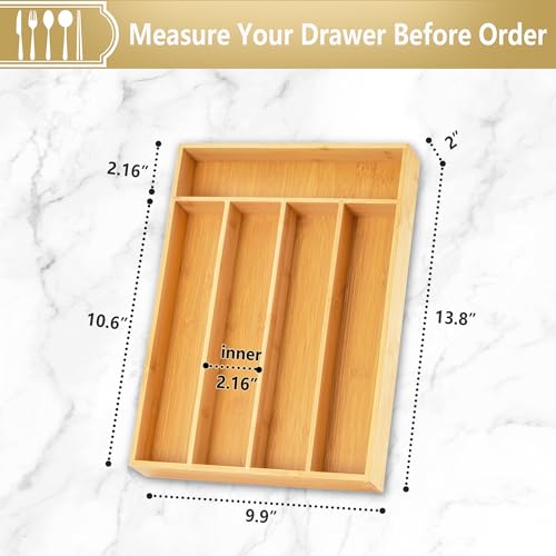 Silverware Organizer, 10 Inch Utensil Organizer Kitchen Drawer Organizer Bamboo Silverware Holder Cutlery Tray Organizer in Drawer Flatware Organizer Tray(5 slots, Natural