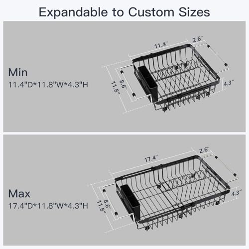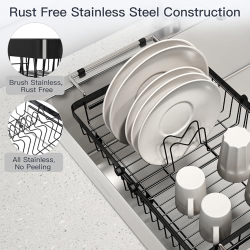 🔄 Expandable & Adaptable: Slide to customize this expandable dish drying rack for single/double sinks. Perfect space saving dish drying rack solution for tight spaces
