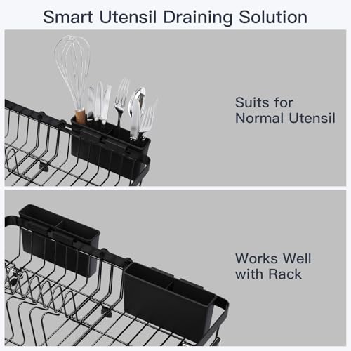 🍴Durchtrieben Draining Solution: Deep dish drainer rack compartment prevents utensil slipping. Works seamlessly un… sink dish drying rack configurations