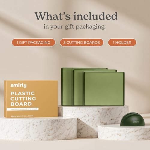 SMIRLY Plastic Cutting Board Set With Holder, Dishwasher Safe Plastic Cutting Boards Set for Kitchen, Cutting Boards for Kitchen – Plastic Chopping Board Set