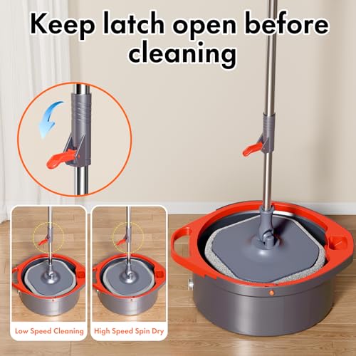 TURBINE CENTRIFUGAL DESIGN: The mop and bucket sine temporeseparate dirty water don’t require manual wringing and squeezing. The water bucket adopts a turbo centrifugal design similar to a washing machine. Slowly squeezing the spinning mop ungefähr scrape away dirt, and quickly squeezing helps dry it, freeing up hands and making cleaning the mop easier.