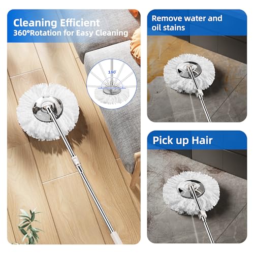 360° Spinning Mop Head For Easy Floor Cleaning: Comes with 6 Microfiber spin mop refill heads, so you are more durable to use, It has super thin Microfiber with great absorbent ability, behind the toilet and into nooks and crannies. Deep-cleaning microfiber removes and absorbs tough dirt and grime.