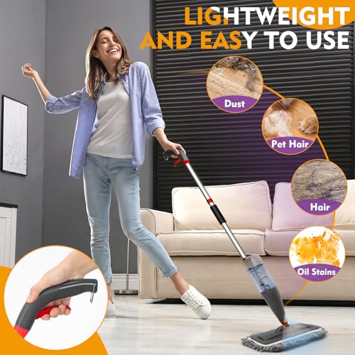 Spray Mop for Floor Cleaning with Washable Pads, Microfiber Wet Mops with 800 ml Refillable Bottle,Reusable Dust Mops with Sprayer for Hardwood Laminate Vinyl Tile Cleaning